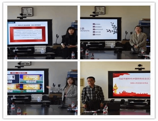 會(huì)上,姚蘭匯報(bào)了思政課建設(shè)情況,重點(diǎn)包括思政課建設(shè)情況、取得的成果及存在的一些問題等。裴立媛老師組織了《習(xí)近平新時(shí)代中國特色社會(huì)主義思想》課程的集體備課。在集體備課會(huì)中,朱金利老師圍繞“依靠人民創(chuàng)造歷史偉業(yè)”做課程教學(xué)展示,陳曉紅、曹珊珊、田秋影三位老師分別圍繞第三專題“堅(jiān)持以人民為中心”做了教學(xué)設(shè)計(jì)的分享,各位參會(huì)老師圍繞四位教師的教學(xué)展示作出點(diǎn)評(píng)并提出建議。