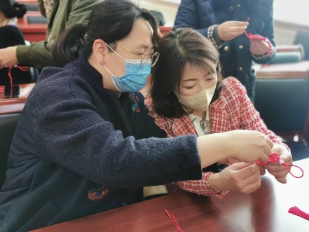 金惠敏老師為大家講解了“金氏繩結(jié)”的歷史淵源和技藝傳承,“金氏繩結(jié)”的編結(jié)方法和作品寓意,為大家更好地學(xué)習(xí)中國(guó)傳統(tǒng)繩結(jié)編織的方法,了解傳統(tǒng)工藝和文化意義,提升女職工動(dòng)手能力和審美觀提供了幫助。
