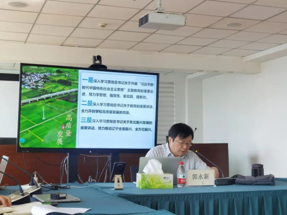 郭永新回顧了前一階段學校主題教育工作進展情況。學校緊緊圍繞“學思想、強黨性、重實踐、建新功”總要求,把理論學習、調(diào)查研究、推動發(fā)展、檢視整改貫通起來,有機融合、一體推進,努力在深學細照篤行中提高理論素養(yǎng)、堅定理想信念、升華覺悟境界、增強能力本領。郭永新指出,推動高質(zhì)量發(fā)展,要從習近平新時代中國特色社會主義思想中汲取智慧和力量。要全面落實以學增智要求,在提升政治能力、思維能力、實踐能力中培育推動高質(zhì)量發(fā)展的生力軍。一是為信仰“提純”,把“看家本領”學到手,練就“政治鑒別”的“敏銳性”;二是為黨性“淬火”,把“興黨本領”學到手,練就“忠黨愛民”的“金剛身”;三是為事業(yè)“燃燒”,把“強國本領”學到手,練就“劈波斬浪”的“硬功夫”。郭永新強調(diào),推動高質(zhì)量發(fā)展,要深刻把握習近平新時代中國特色社會主義思想的世界觀和方法論。一是必須堅持人民至上,守好根本價值立場;二是必須堅持自信自立,彰顯內(nèi)在精神特質(zhì);三是必須堅持守正創(chuàng)新,弘揚時代理論品格;四是必須堅持問題導向,把握創(chuàng)新源頭活水;五是必須堅持系統(tǒng)觀念,用好基本工作方法;六是必須堅持胸懷天下,展現(xiàn)新的格局境界。郭永新希望,廣大黨員在今后工作中能夠常態(tài)化跟進學習黨的創(chuàng)新理論,持續(xù)開展調(diào)查研究,隨時檢視整改問題,進一步用習近平新時代中國特色社會主義思想強基鑄魂、提升本領、推動工作,助力遼寧全面振興、全方位振興,著力培養(yǎng)擔當民族復興大任的時代新人。