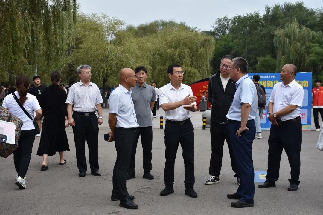 9月9日清晨,學(xué)校黨委書記伊煥斌,黨委副書記任慶國,副校長吳厚興、李冬青、馮繼光,校長助理劉祚斌、趙國軍以及相關(guān)部門負責(zé)人現(xiàn)場督導(dǎo)學(xué)生報到工作。伊煥斌一行深入各學(xué)院迎新接待點、志愿者服務(wù)站、綠色通道等處,了解現(xiàn)場服務(wù)保障情況,慰問工作人員和志愿者,每到一處都駐足仔細詢問,指導(dǎo)迎新工作,及時解決問題,確保新生報到各項工作保障到位。校領(lǐng)導(dǎo)為開啟大學(xué)生活的新同學(xué)送上祝福,寄語同學(xué)們志存高遠,不負韶華,成長成才。