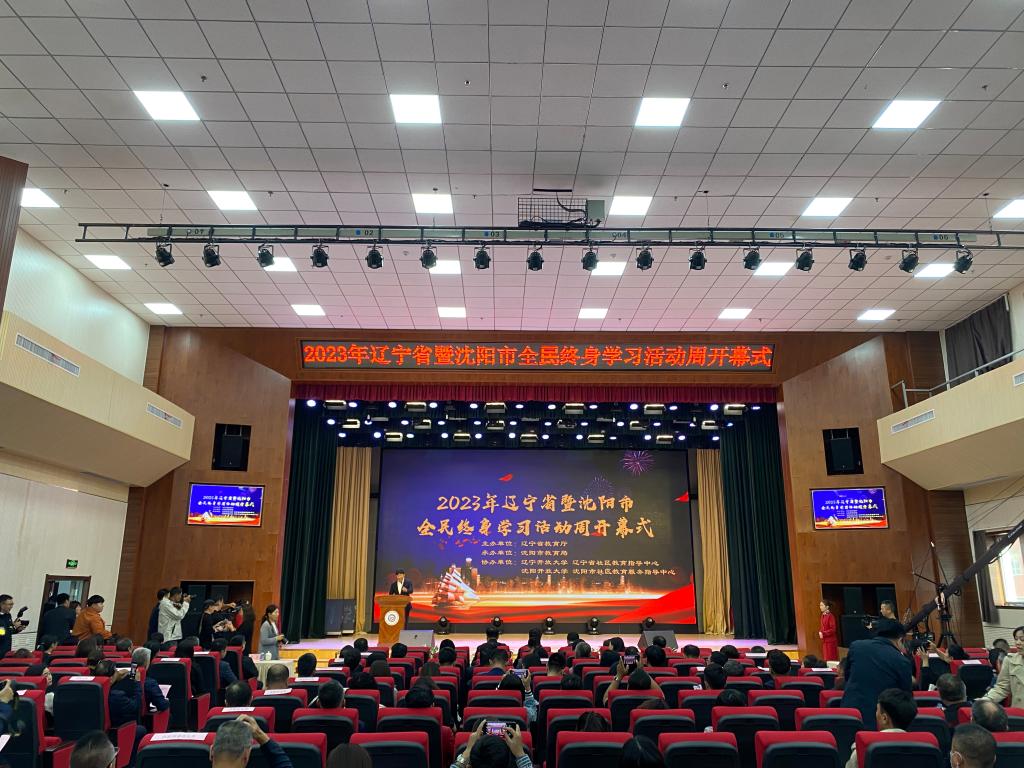 10月10日下午,2023年遼寧省暨沈陽市全民終身學(xué)習(xí)活動(dòng)周開幕式在沈陽舉行。省教育廳二級(jí)巡視員于洪江,遼寧開放大學(xué)黨委書記、遼寧省社區(qū)教育指導(dǎo)中心主任伊煥斌,遼寧開放大學(xué)副校長(zhǎng)吳厚興和沈陽市教育局、沈陽開放大學(xué)相關(guān)領(lǐng)導(dǎo)以及來自省內(nèi)14個(gè)地市、15個(gè)老年教育示范區(qū)教育行政部門領(lǐng)導(dǎo),全省社區(qū)教育指導(dǎo)中心、開放大學(xué)、社區(qū)學(xué)院、百姓學(xué)習(xí)之星、終身學(xué)習(xí)品牌項(xiàng)目、社區(qū)教育工作者、社區(qū)居民和新聞媒體代表等300余人參加會(huì)議。開幕式由副校長(zhǎng)吳厚興主持。