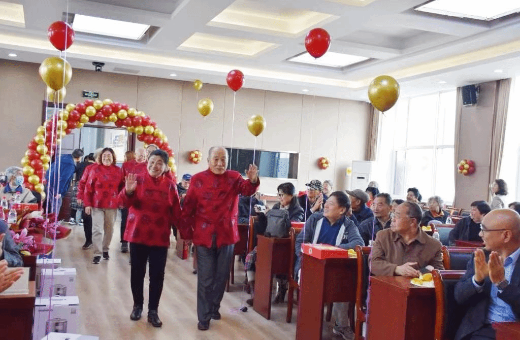 伴著悠揚(yáng)的小提琴曲,金婚慶典儀式將活動(dòng)推向高潮。張海波為現(xiàn)場(chǎng)金婚夫婦頒發(fā)紀(jì)念品并送祝福。李孝俊老同志代表金婚夫婦發(fā)言。