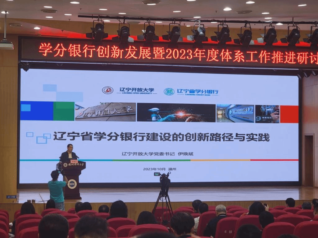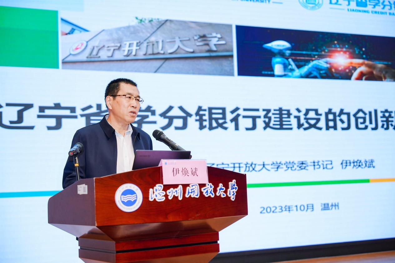 10月24-25日,學分銀行創(chuàng)新發(fā)展暨2023年度體系工作推進研討活動在溫州舉行,國家開放大學黨委書記、校長王啟明,我校黨委書記伊煥斌,教育部職業(yè)教育與成人教育司高等繼續(xù)教育處處長董振華,溫州市政府副市長出席會議,44家省、市級開放大學,部分職業(yè)院校、行業(yè)企業(yè)和學分銀行服務體系領導、專家200余人參加會議。我校黨委書記伊煥斌作專題發(fā)言。