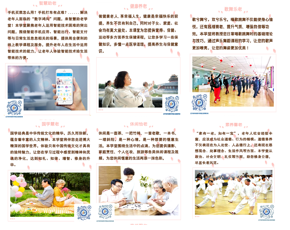 遼寧開放大學(xué)作為一所服務(wù)于遼寧學(xué)習(xí)型社會(huì)建設(shè)的新型省屬高校,按照省教育廳關(guān)于老年教育工作的要求,積極探索老年教育服務(wù)新模式,擴(kuò)大老年教育資源供給,成立了線下老年大學(xué)體驗(yàn)店,并依托全省開放大學(xué)系統(tǒng)建立、遴選出60多家社區(qū)(老年)教育示范中心,初步構(gòu)建了省、市、縣、鄉(xiāng)、村的五級(jí)辦學(xué)體系。自疫情爆發(fā)以來,學(xué)校一手抓疫情防控,一手抓線上教學(xué),先后搭建了遼寧終身學(xué)習(xí)網(wǎng)、遼寧老年學(xué)習(xí)網(wǎng)、學(xué)習(xí)網(wǎng)公眾號(hào)、遼寧有線電視“老年教育專區(qū)”等平臺(tái),形成了“線上線下”相補(bǔ)充、“大屏小屏”相結(jié)合的教學(xué)模式。