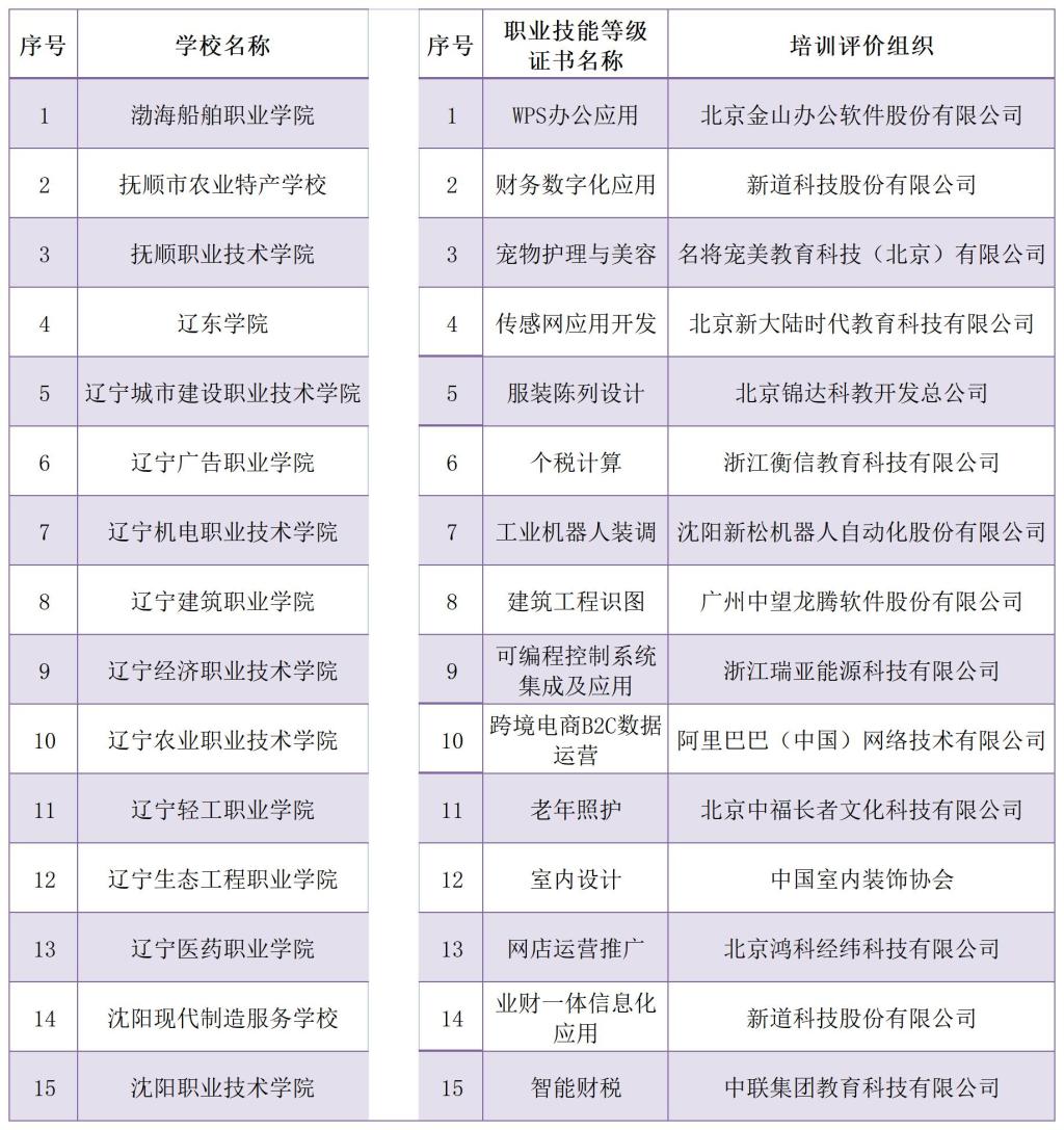 書證融通課程考核院校及培訓(xùn)評價組織一覽表