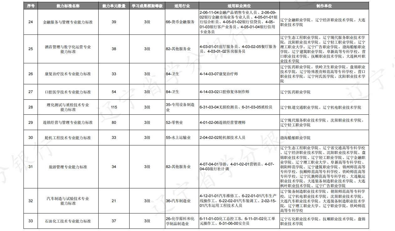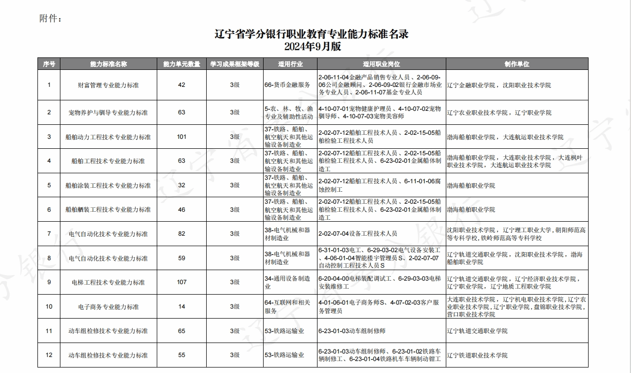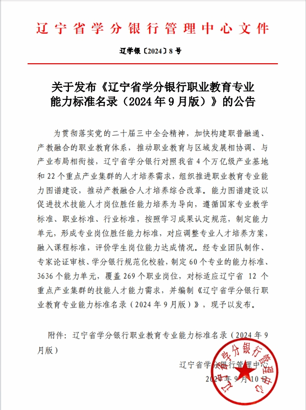 【通知公告】--關(guān)于發(fā)布《遼寧省學(xué)分銀行職業(yè)教育專業(yè)能力標(biāo)準(zhǔn)名錄(2024 年 9 月版)》的公告