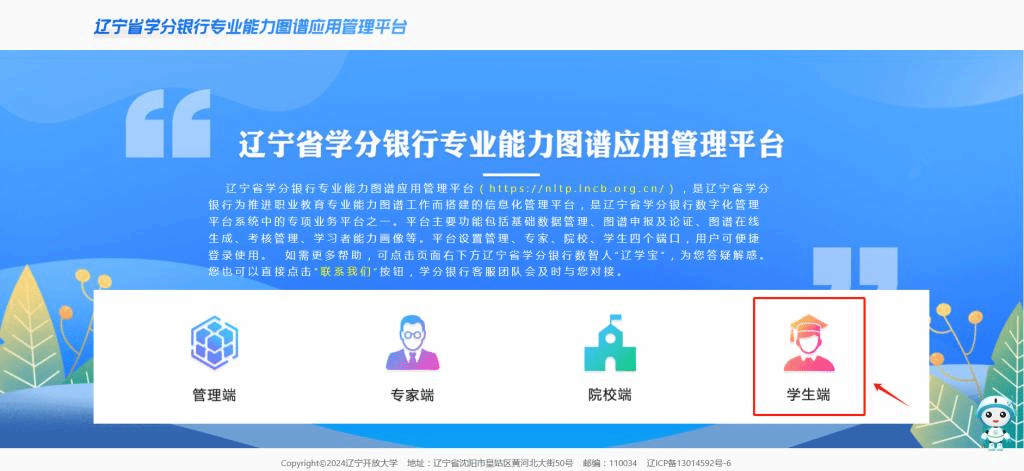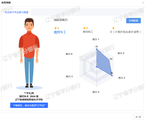 方式二:PC端 登錄遼寧省學(xué)分銀行專業(yè)能力圖譜應(yīng)用管理平臺(https://nltp.lncb.org.cn/)進(jìn)入學(xué)生端,點(diǎn)擊“能力畫像”點(diǎn)擊“下載個人能力畫像”,使用手機(jī)掃描“遼學(xué)寶”二維碼,查收個人能力畫像報(bào)告!