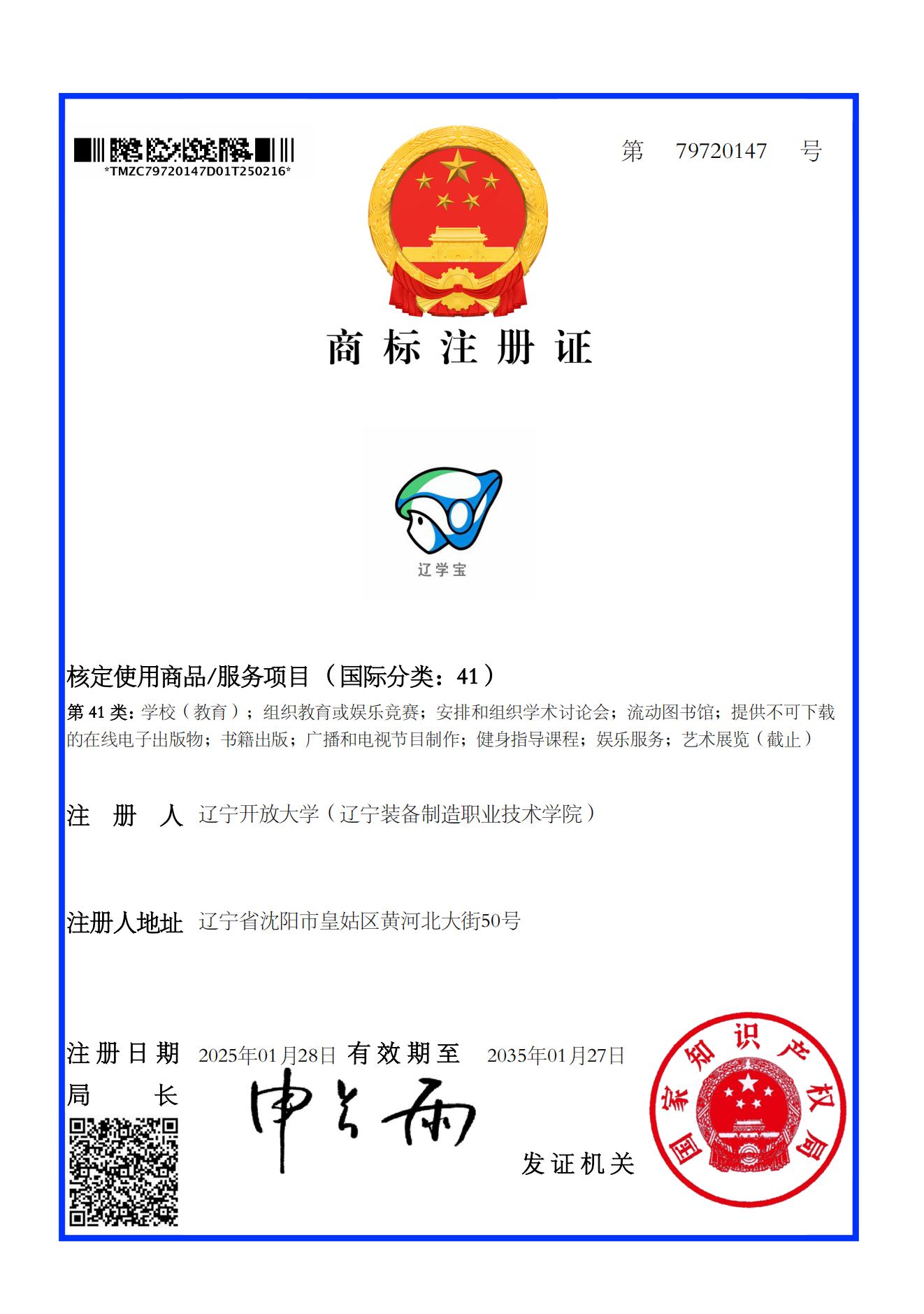 近日,遼寧開放大學(xué)收到國家知識產(chǎn)權(quán)局頒發(fā)的商標(biāo)注冊證書(注冊號:第79720147號、第79716889號、第79727596號),學(xué)校自主創(chuàng)立的"遼學(xué)寶"標(biāo)識正式獲得法律保護,“遼學(xué)寶”成為全國首個成功注冊的學(xué)分銀行專屬商標(biāo)。