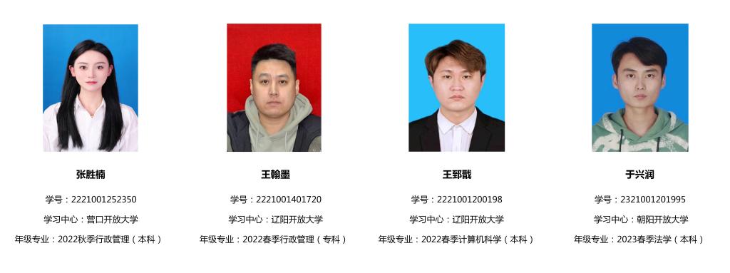 2024年10月21日,省校公布了2023年度遼寧開放大學(xué)開放教育獎(jiǎng)學(xué)金評選結(jié)果,來自21個(gè)辦學(xué)單位的39名學(xué)生榮獲遼寧開放大學(xué)開放教育獎(jiǎng)學(xué)金。獲獎(jiǎng)的學(xué)生來自各行各業(yè),有奮斗在基層一線的民警、工人、教師、社區(qū)工作者,有企事業(yè)單位的領(lǐng)導(dǎo)、干部,也有戍守邊關(guān)的解放軍戰(zhàn)士。他們在工作中愛崗敬業(yè)、勇于擔(dān)當(dāng)、能力突出;他們在學(xué)習(xí)上嚴(yán)謹(jǐn)認(rèn)真、刻苦努力、成績優(yōu)秀,用自己的辛勤付出和不懈努力贏得了老師和同學(xué)們的一致好評!